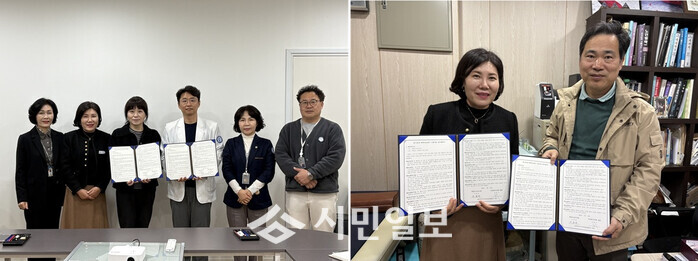 | ▲ 영암군보건소, 영암한국병원-독천한국의원과 장기요양 재택의료센터 시범사업' 운영 업무 협약 자료사진 / 영암군 제공 |