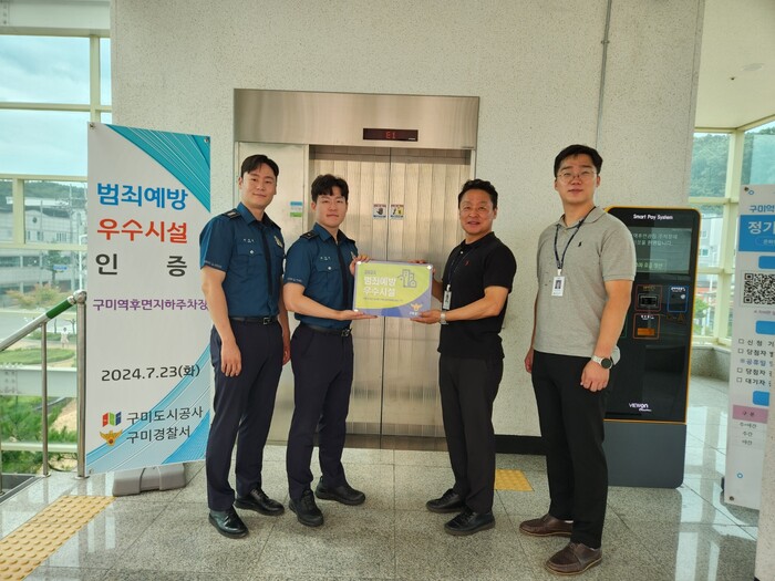 [구미=박병상 기자] 구미도시공사에서 운영하는 공영주차장 2개소와 도봉국민체육센터는 지난 23일 “범죄 예방 우수시설 인증”을 획득하고, 구미경찰서로부터 인증패를 전달 받았다.