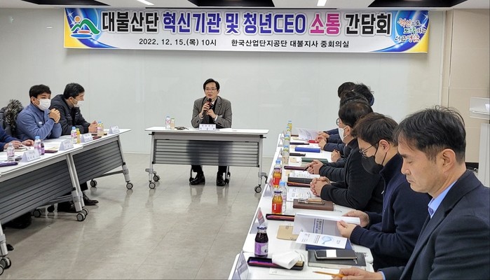 | ▲ 우승희 영암군수가 15일 한국산업단지공단 대불지사 중회의실에서 대불국가산업단지 내 혁신기관 및 청년CEO 소통 간담회를 주재하고 있다. / 사진=영암군 제공 |