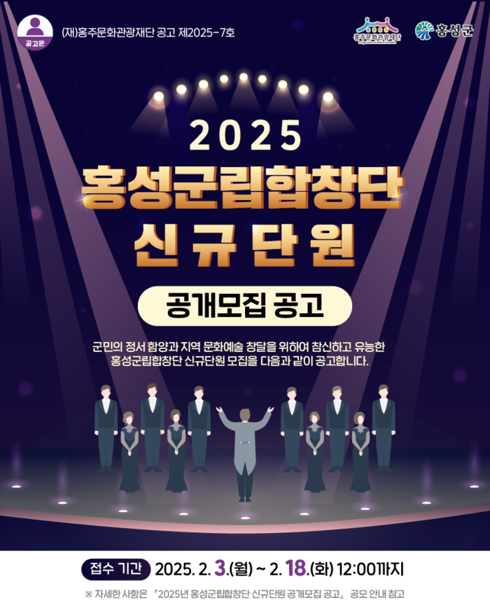 접수마감은 오는 18일까지이며, 제출서류는 응시원서, 주민등록등본, 자유곡 악보, 졸업증명서이다. 자세한 내용은 홍성군과 홍주문화관광재단 홈페이지에서 확인할 수 있다.