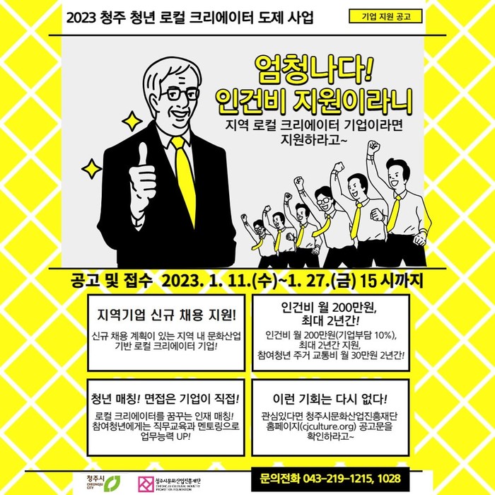 한편, 이번 사업을 위해 2023년 첫날 위‧수탁 협약을 체결한 청주시와 청주문화재단은 조만간 로컬크리에이터를 통해 청주 청년들의 취‧창업과 지역 정착 해법을 찾는 중단기 로드맵 발표를 예고했다.