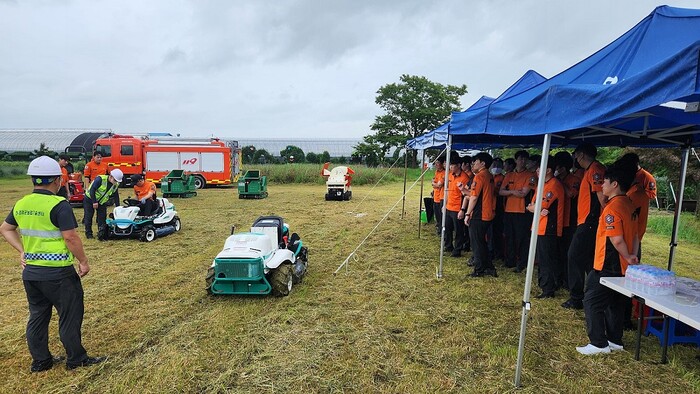 아울러 영암군이 농기계임대사업으로 농가에 빌려주고 있는 승용예초기, 콩 탈곡기, 목재파쇄기 등의 운전 실습과 함께 비상스위치, 안전 센서를 활용하는 안전 이용법도 전했다.