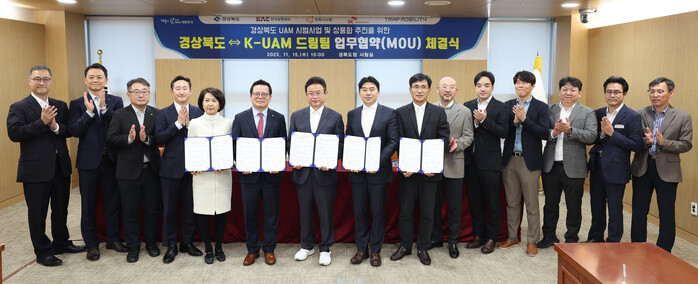 [안동=박병상 기자] 경북도는 경북도청에서 지난 15일 한국공항공사, 한화시스템, SK텔레콤, 티맵모빌리티로 구성된 ‘K-UAM 드림팀’ 컨소시엄과 경북형 도심항공교통(이하 “G-UAM”) 시범사업 및 상용화 추진을 위한 업무협약을 체결했다고 밝혔다.