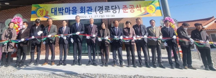이성주 대박마을 이장은 “경로당 신축을 위해 힘써 주신 김윤철 군수님을 비롯한 관계자 여러분께 감사드리며 건강한 여가활동과 생산적인 공동체 장소가 되도록 노력하겠다” 고 전했다.