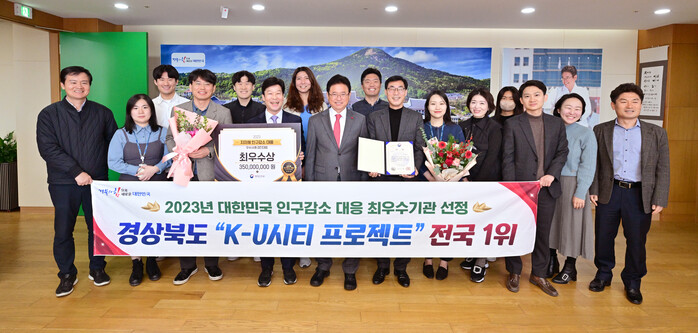 [안동=박병상 기자] 경북도는 ‘K-U시티 프로젝트’로 12월 6일 행정안전부 주관 ‘2023년 지방자치단체 인구감소 대응 우수사례 경진대회’에서 최우수기관으로 선정되었다고 밝혔다.