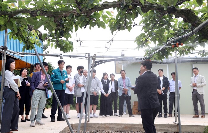 전남에너지고와 동아보건대 학생들은 시연을 보며 궁금한 것을 농가와 영암군 관계자에게 물었고, 스파트팜 관련 다양한 의견을 나누는 시간도 가졌다.