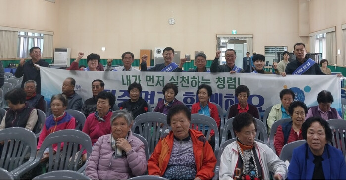 이날 적중면사무소는 강연에 참석한 주민들에게 부패 행위 근절을 위한 다양한 청렴 홍보물을 배부하고, 부패·공익신고 제도에 대해 중점적으로 안내하며 투명한 사회 실현에 대한 주민들의 관심을 높였다.