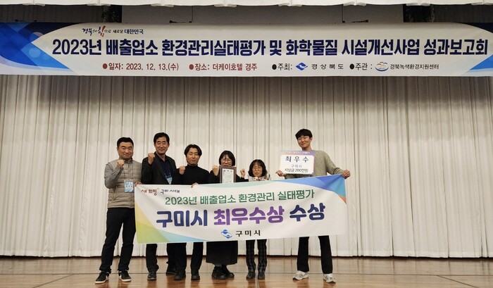 [구미=박병상 기자] 경북 구미시는 지난 13일 경주 더케이 호텔에서 열린 경상북도 주최의 ‘2023년 배출업소 환경관리 실태 평가보고회’에서 최우수상을 받으며, 도내 22개 시‧군 중 배출업소 환경관리 분야에서 최고 수준임을 입증했다.