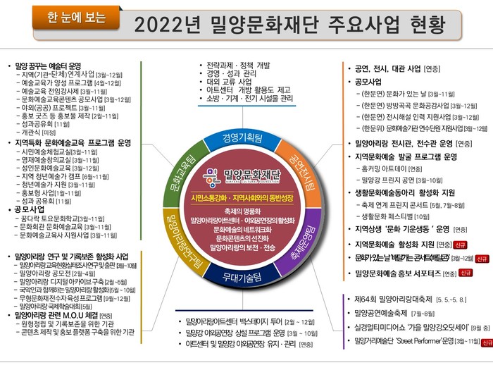 | ▲ 한 눈에 보는 2022년 밀양문화재단 주요사업 현황 |