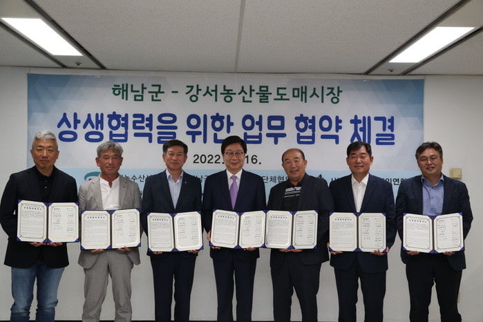 군은 최근 서울시농수산식품공사 강서지사에서 서울시농수산식품공사를 비롯한 유통 관련 기관·단체와 해남 농산물 판로 확대를 위한 업무협약을 체결했다.
