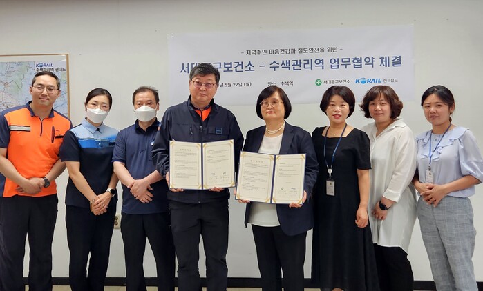 양 기관은 박선정 서대문구보건소장과 조기한 한국철도공사 수색관리역장 등 관계자들이 참석한 가운데 최근 수색역 3층 역무실에서 '지역주민 마음 건강과 철도 안전을 위한 업무협약'을 체결했다.