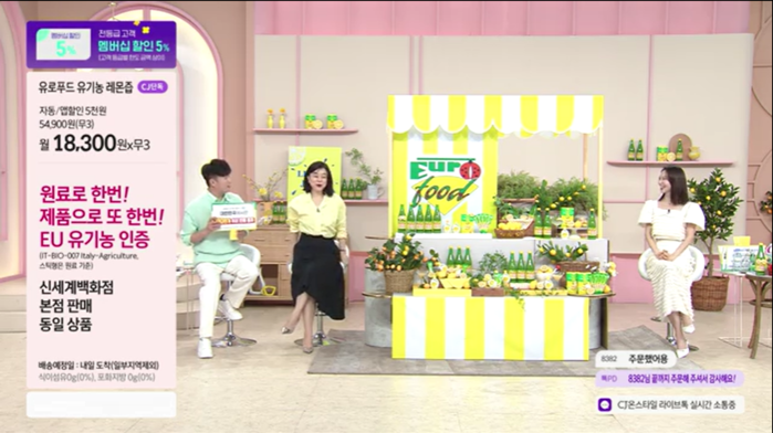 [시민일보 = 김민혜 기자] 골든벨통상㈜는 지난 2일, CJ 홈쇼핑의 인기 프로그램 ‘최화정SHOW’를 통해 선보인 ‘100% 이태리 직수입 유기농 레몬즙’ 세트 상품이 방송과 동시에 전량 매진을 기록했다고 3일 밝혔다.