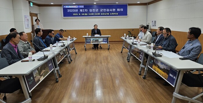 [강진=정찬남 기자] 전남 강진군은 지난 18일 강진군청 소회의실에서 서순철 부군수를 비롯한 관계 공무원과 11개 읍면의 군민감사관 등 14명이 참석한 가운데 ‘2023년 제2차 군민감사관 회의’를 개최했다.