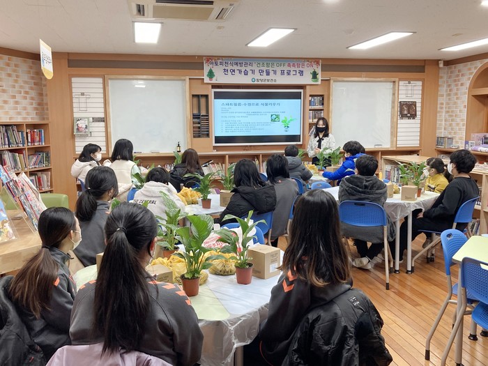 프로그램에 참여한 아동은 “유리병에 작은 자갈을 깔고 그위에 식물을 심어 천연가습기를 만드니 너무 예쁘다“며 ”내 책상위에 두고 잘 키우겠다“며 애정을 쏟았다.