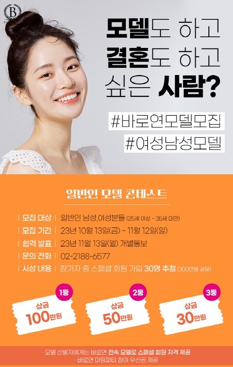 콘테스트는 오는 11월 12일 일요일 모집을 마감하며, 합격 발표는 2023년 11월 13일 월요일에 개별 통보로 발표하고, 모델 선발자에게 바로연 전속 모델과 스페셜 회원 자격 제공, 그리고 바로연 미팅 파티 참여 우선권을 제공한다.