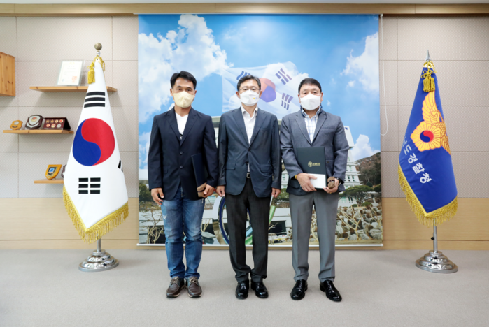 | ▲ 전남경찰청 이충호 청장은 은 보이스피싱 범인을 신고한 택시 기사 2명 감사장 수여했다(출처=전남경찰청) |