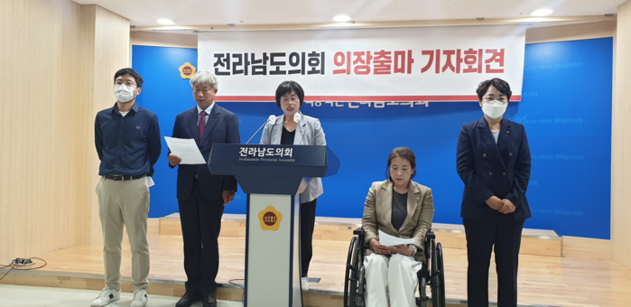 이번 의장출마에는 진보당과 정의당이 참여해 뜻을 함께 하기로 의견을 모으고 다수의 의석을 이유로 의장단 선거를 요식행위로 전략시키는 민주당의 형태는 도민의 뜻이 반영되는 통로는 원칙적으로 막혀버리게 되고 도의회는 결국 도당의 하위 개념으로 전략하게 된다며 꼬집었다.