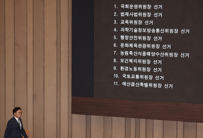 앞서 민주당은 전날 본회의에서 운영위원장에 박찬대 원내대표, 과학기술정보방송통신위원장에 최민희 의원, 국회 교육위원장에 김영호 의원, 행정안전위원장에 신정훈 의원, 문화체육관광위원장에 전재수 의원, 농림축산식품해양수산위원장에 어기구 의원 등을 지명해 의결했다.