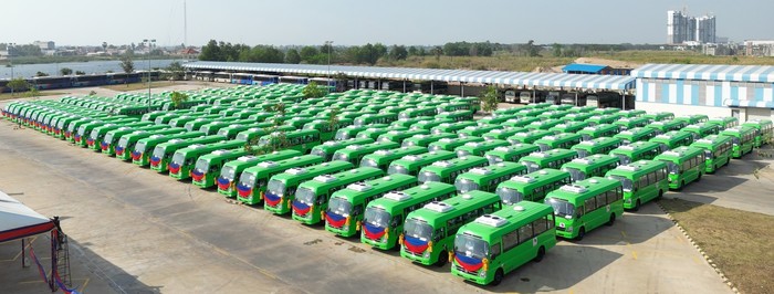 | ▲ 부영그룹이 캄보디아에 기증한 버스 200대. (사진=부영그룹 제공) |