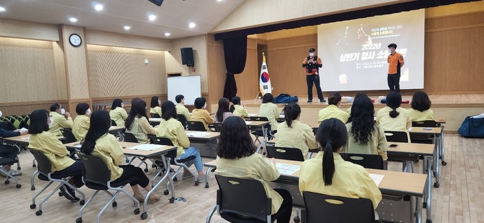 거창군은 지난 22일 거창군청소년수련관에서 화재발생 등 긴급상황 초기 대응 역량을 배양하고 소방안전관리자 의식 고취를 위해 인구교육과 직원 30여 명이 참여한 가운데 거창소방서, 소방안전관리대행업체와 2022년 상반기 청사 소방 훈련을 시행했다.