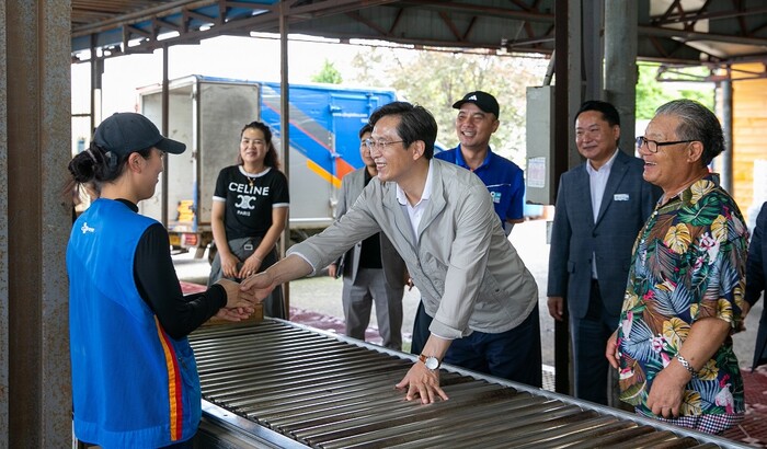 이날 오전 삼호읍 용앙리 택배물류센터를 찾아 택배기사, 분류 작업자, 대리점주 등과 이야기를 나누고, 안전 운전과 원활한 배송을 당부했다.