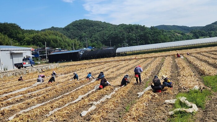 (사)한국여성농업인 합천군연합회는 농번기에 어려운 농가를 선정해 일손돕기를 진행했으며, 삼가면 하판리 일대 약 3,000평에 대해 마늘 수확을 지원하며 농촌인력 부족으로 어려움을 겪는 농가에 도움을 줬다.