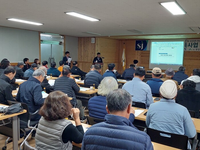 | ▲ 영암군, 지난 16일 영암군산림조합에서 50여 명 임업인 대상 ‘2024년 산림소득분야 사업설명회’ 개최 / 영암군 제공 |