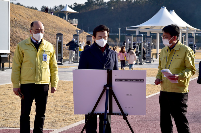 | ▲ 남강둔치 친수공간 조성 현장 점검사진 |
