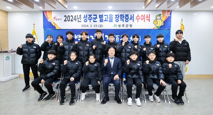 [성주=박병상 기자] 경북 성주군(군수 이병환)은 지난 23일 『2024년 성주군 별고을 장학증서 수여식』을 개최하고, 성주를 빛낸 예체능 우수학생을 장학생으로 선발하여 증서를 수여했다.