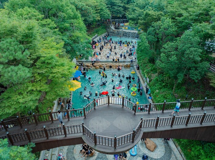 | ▲ 영암 월출산기찬랜드물놀이장에서 물놀이를 즐기고 있는 피서객들 / 영암군 제공 |