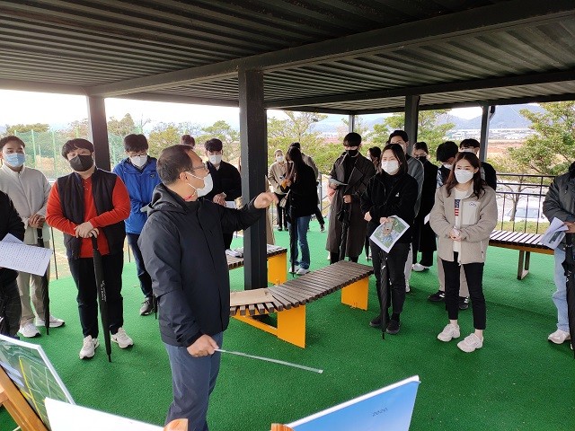 | ▲ 강진군 신규 공무원(32명)들이 강진산단 현장과 강진만생태공원 일원에서 사업 추진상황에 대해 설명을 듣고 있다./ 사진=강진군 제공 |