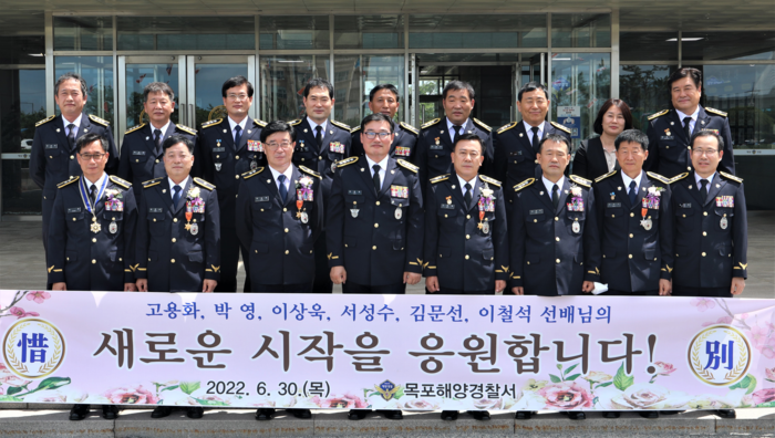 이종욱 목포해양경찰서장은 “영예로운 퇴임을 축하하며, 국가와 국민을 위해 한평생 봉사하고 헌신해 온 노고에 대해 깊이 감사드린다”면서,“새롭게 맞이할 앞날에도 건강과 행운이 가득하길 바란다”고 전했다.
