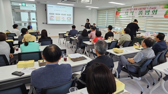 [강진=정찬남 기자] 전남 강진군 농촌신활력플러스사업추진단(농어촌개발과)은 지난 24일, 농업회사법인 여름지기 주주 및 관계자들과 함께 ‘강진딸기활용 상품개발 및 컨설팅’ 연구용역을 통해 개발된 상품 품평회를 강진군웰니스푸소센터(강진군 종합운동장 내)에서 가졌다.