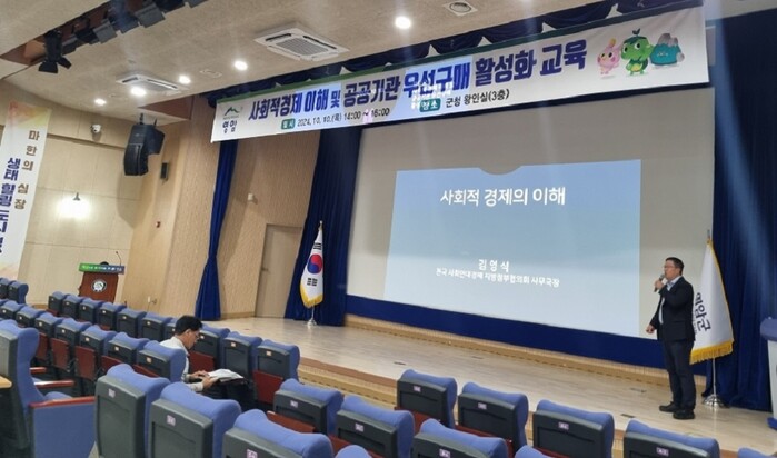 교육에는 김영식 전국사회연대경제지방정부협의회 사무국장, 김형윤 전남상사사회적협동조합 이사장이 강사로 나서, 사회적경제의 개념, 사회적경제기업 설립 절차와 운영 사례, 공공기관 우선구매 제도, 공공 구매 플랫폼 사용법 등을 설명했다.