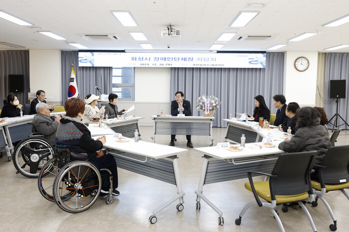 | ▲ 정명근 화성특례시장이 장애인 단체장들에게 정책에 대한 의견을 듣고 있다 /사진제공=화성특례시 |