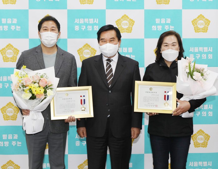 [시민일보 = 여영준 기자] 서울 중구의회(의장 조영훈) 김행선 부의장과 길기영 복지건설위원장이 지난 24일 지방의정봉사상과 지방의정대상을 각각 수상했다.