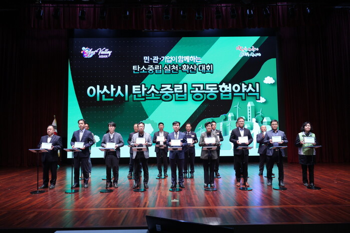 [아산=박명수 기자] 충남 아산시가 지난 9일 시청 시민홀에서 민·관·기업이 함께하는 '탄소중립 실천·확산대회'를 개최했다.