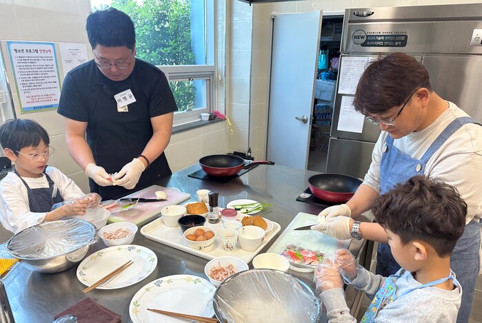 이날 요리교실에는 초·중학생 자녀와 아빠가 한팀으로 구성돼 총 8개팀 16명이 참여한 가운데, 1회차 메뉴인 도제식 유부초밥을 함께 만들며 아빠와 자녀가 요리를 통해 유대감와 공감대를 나눌 수 있는 유익한 시간을 보냈다.