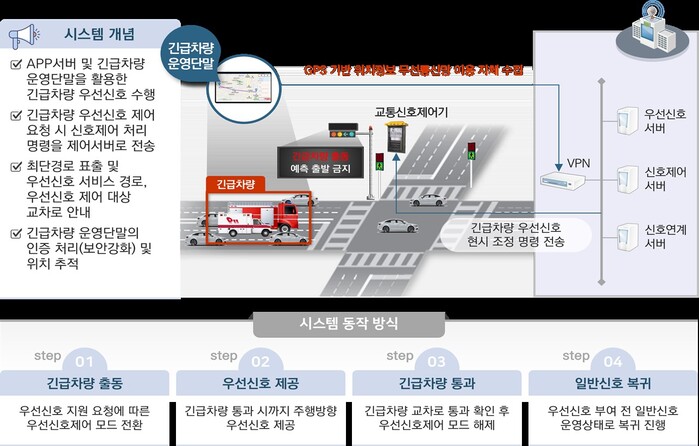 ‘긴급차량 우선 신호시스템’으로 긴급차량(소방차, 구급차, 경찰차 등)이 신호 교차로를 신호대기 없이 우선 통과할 수 있도록 교통신호를 제어해 긴급차량의 골든타임을 확보하고 시민의 생명과 재산을 보호하고 있으며, 구미소방서를 중심으로 5개 구간을 운영 중이고 시스템 개선을 통해 확대‧구축할 계획이다.