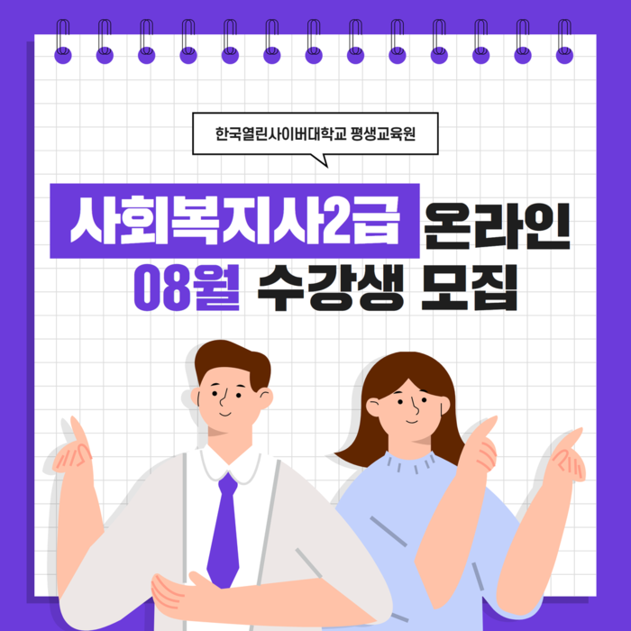 사회복지사2급 자격과정은 전문학사 이상 졸업자라면 누구나 도전할 수 있다. 사회복지 관련 과목을 17과목 이수하면 되는데 과목은 이론 16과목과 시간제 실습 1과목으로 구성되어 있다. 현장실습은 한국열린사이버대학교 본교에서 진행하고 있고 이론 선 이수 후 원스톱으로 이어서 수행하면 된다.