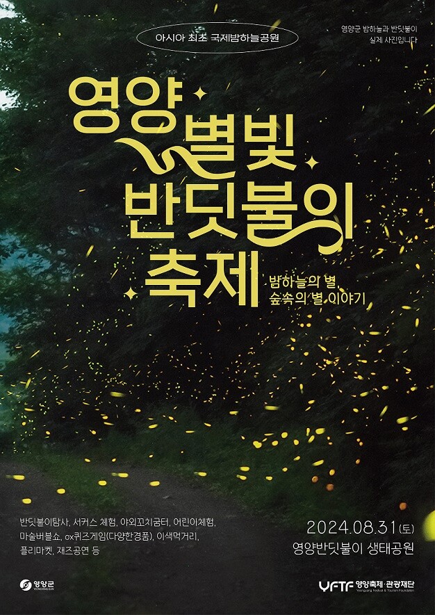 [영양=박병상 기자] 영양군(군수 오도창)은 8월 31일(토) 영양 국제밤하늘 보호공원에서 ‘2024년 별빛 반딧불이 체험 축제’를 개최한다.