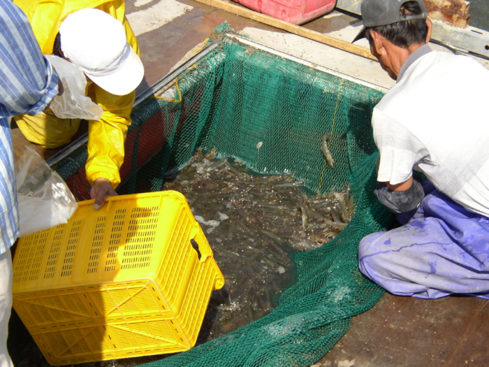 | ▲ 신안의 명물 왕새우 생산하고 있는 현장, 2년째 600억 달성했다.(출처=신안군청) |