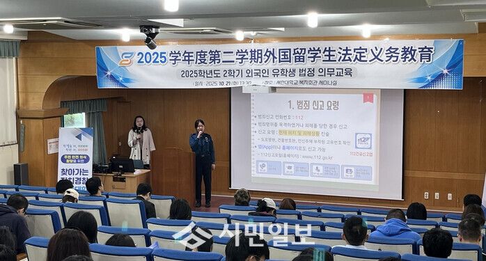 | ▲ 영암경찰서, 지난 21일 세한대학교에서 중국인 유학생 150여 명 대상, ‘외국인이 꼭 알아야 할 범죄 유형’ 주제로 한 범죄예방 교육 자료사진 / 영암경찰서 제공 |
