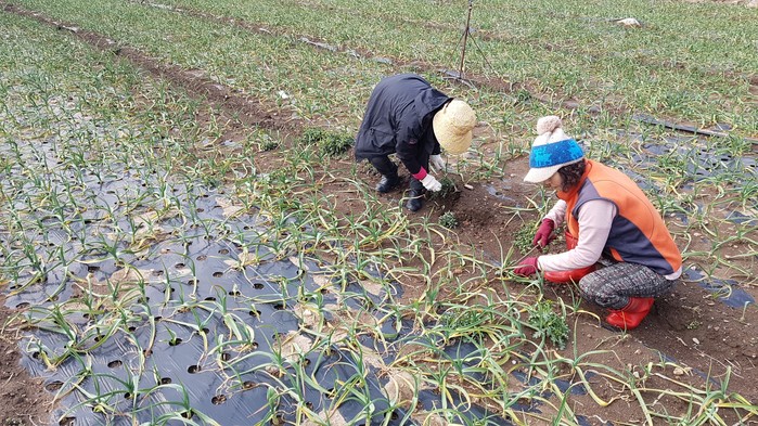 | ▲ 여성농업인 출산 농가 도우미- 마늘밭 잡초 제거(출처=전남도) |