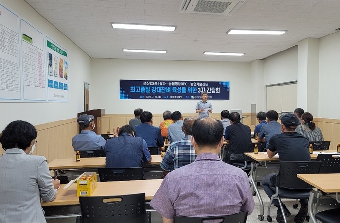 특히 이날 사회를 맡은 안준섭 작물연구팀장은 현재 벼농사 생육시기에 맞춰 이삭거름 적기·적량 시비를 강조했으며, 채희진 농협통합RPC 대표이사는 단백질 함량 등 강대찬 벼의 철저한 품질 관리를 부탁했다.