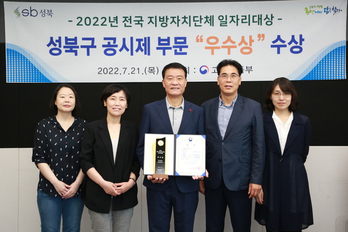 [시민일보 = 홍덕표 기자] 서울 성북구(구청장 이승로)는 최근 세종컨벤션센터에서 개최된 고용노동부 주관 '2022년 전국 지방자치단체 일자리 대상'에서 공시제 부문 '우수상'을 받았다고 22일 밝혔다.