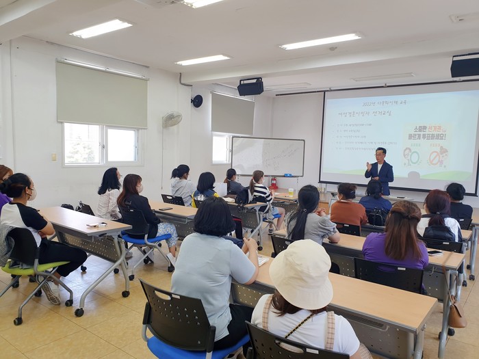 이번 선거교육은 다가오는 제8회 전국동시지방선거를 앞두고 함양군 선거관리위원회 강사와 함께 우리나라 선거제도 이해와 금품제공이나 향응제공 등의 불법행위의 처벌사례 교육했다.