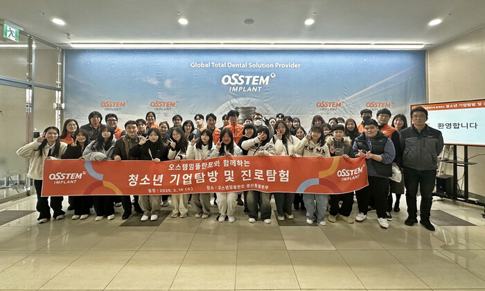 오스템임플란트에 따르면 지난 19일 부산 해운대구 석대첨단산업단지에 위치한 오렌지타워에는 특별한 손님들이 방문했다. 인근의 청소년 교육복지시설인 ‘희망스쿨 지역아동센터’에서 활동하는 중·고등학생들이 임플란트 생산공장인 이곳 오렌지타워를 찾은 것이다.