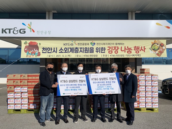 한편, 연말 나눔 행사에 사용된 기금은 KT&G 임직원들의 자발적인 성금으로 모인 ‘상상펀드’로 전액 마련됐다.