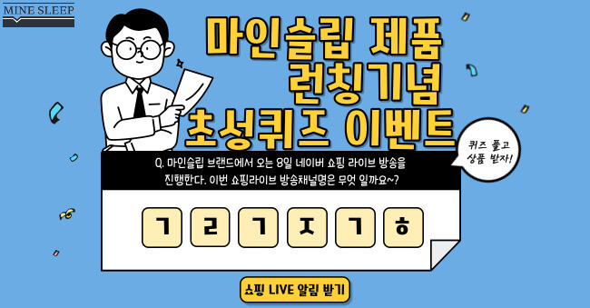 마인슬립, 토퍼매트리스 쇼핑라이브 초성퀴즈 문제를 5월 4일 마인슬립 인스타그램 공식계정에 공개됐다.